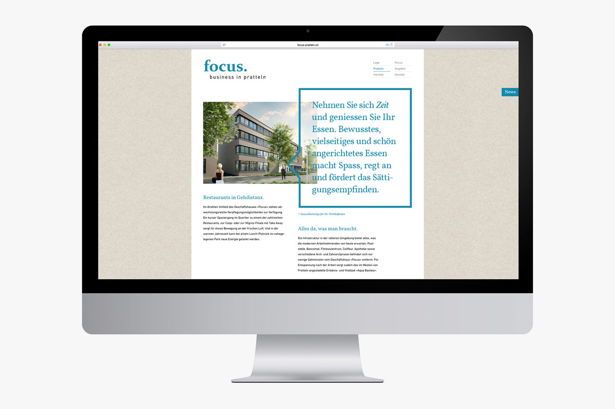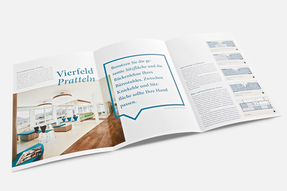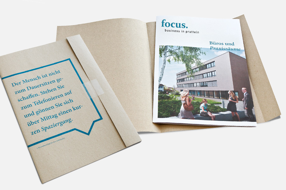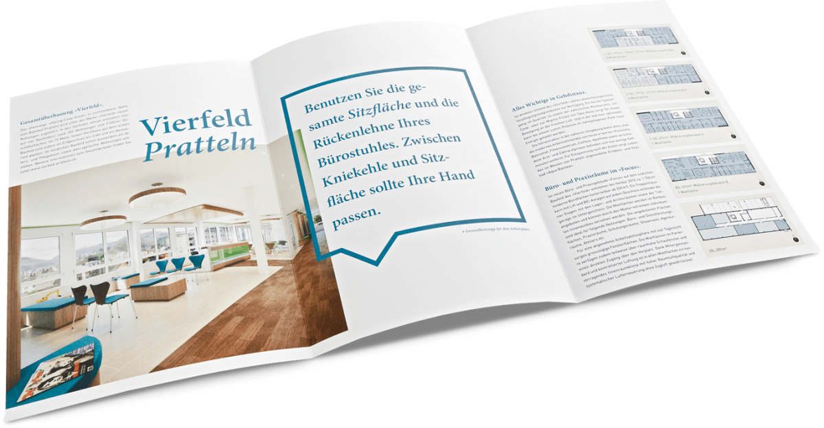 Gestaltung einer Vermarktungsbroschüre und Website für eine Immobilie in Pratteln mit 1'700m2 Büro- und Praxisflächen. Dieses Projekt wurde während meiner Anstellung bei Naef Marketing Kommunikation AG umgesetzt.