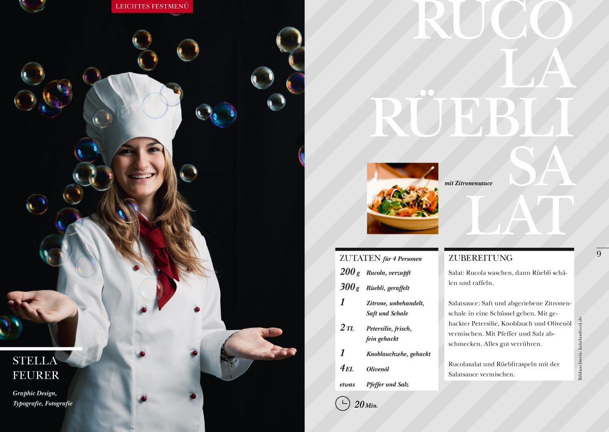 Während meiner Anstellung bei Naef Marketing Kommunikation AG kreierte ich dieses ausgefallene Kochbuch als Weihnachtsgeschenk für den Kundenstamm. Jeder Mitarbeiter wählte ein Thema, zu welchem er jeweils ein Lieblingsrezept für eine Vor-, Haupt- und Nachspeise verriet.