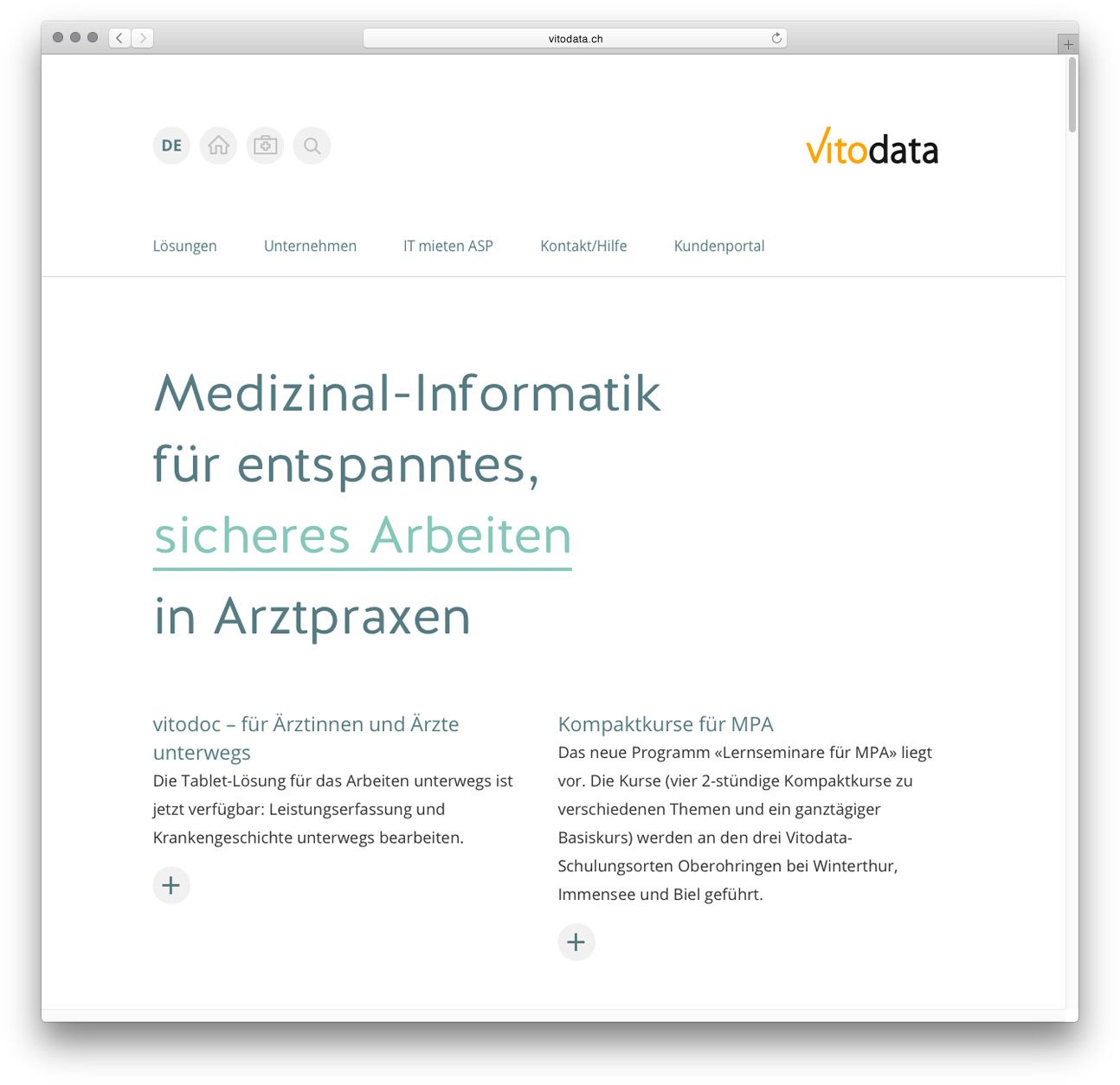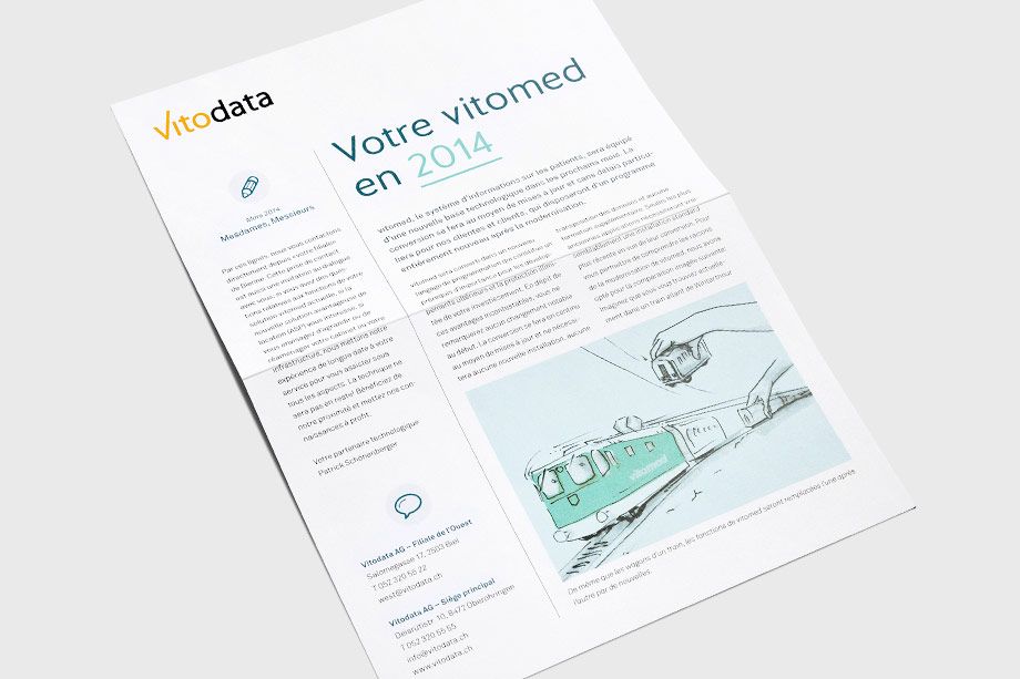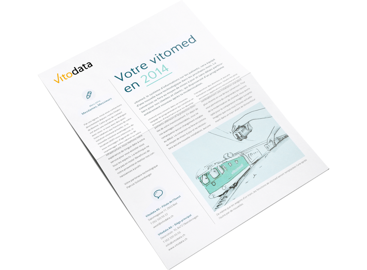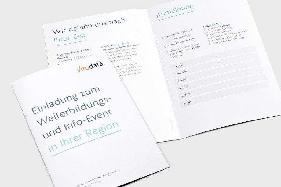 Vitodata entwickelt Praxis-Software für Ärzte. Hierfür wurde ein neues, modernes Erscheinungsbild zum bestehenden Logo entwickelt. Medien: Briefschaften, Newsletter, Einladungsflyer, Webdesign. Diese Arbeiten entstanden während meiner Anstellung bei Naef Marketing Kommunikation AG.